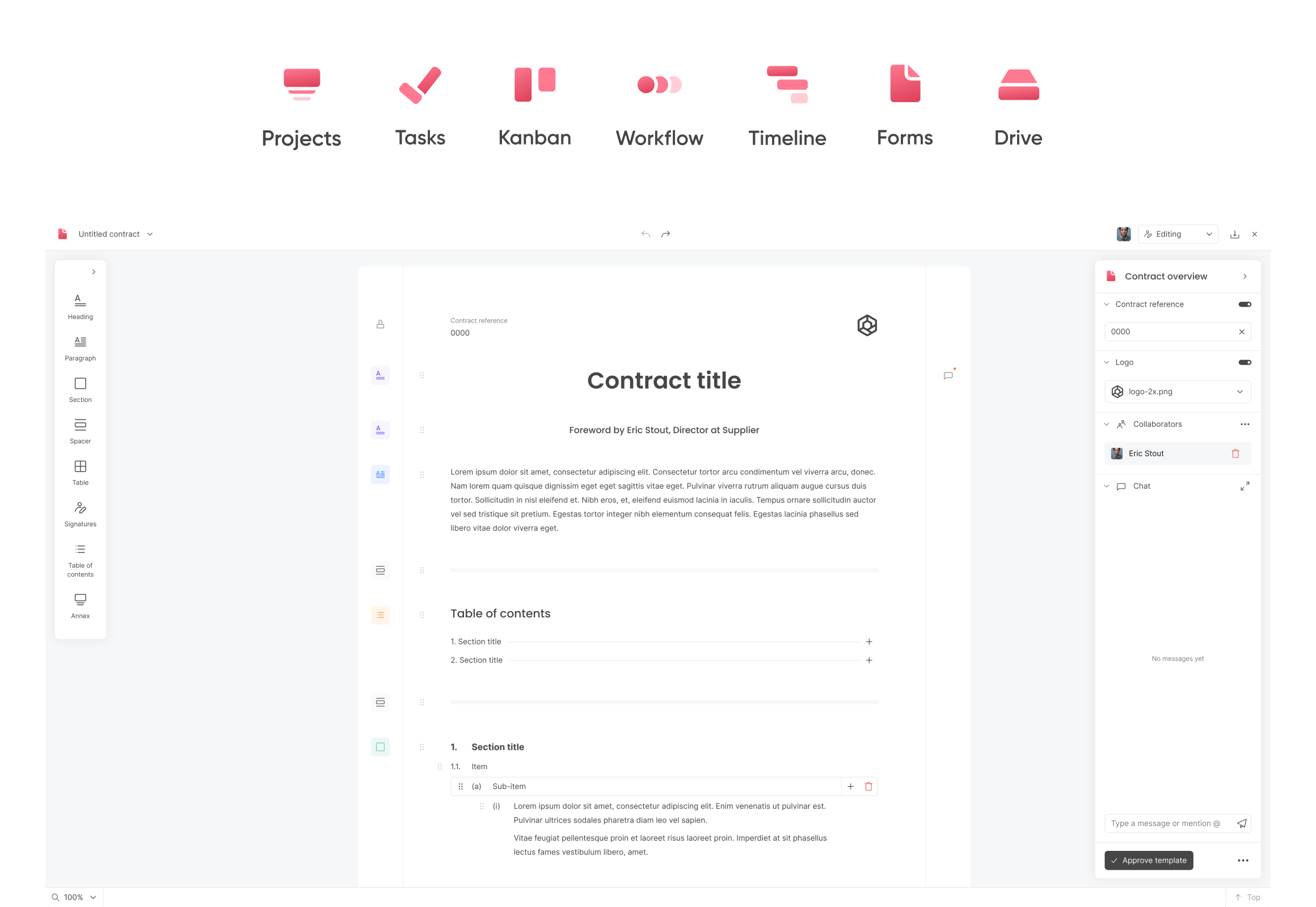 Workspaces for different teams and their needs. Adopting different workspaces equipped with various apps to cater to the diverse needs of different teams, whether it be project management, communication or system apps to manage users of the organisation.