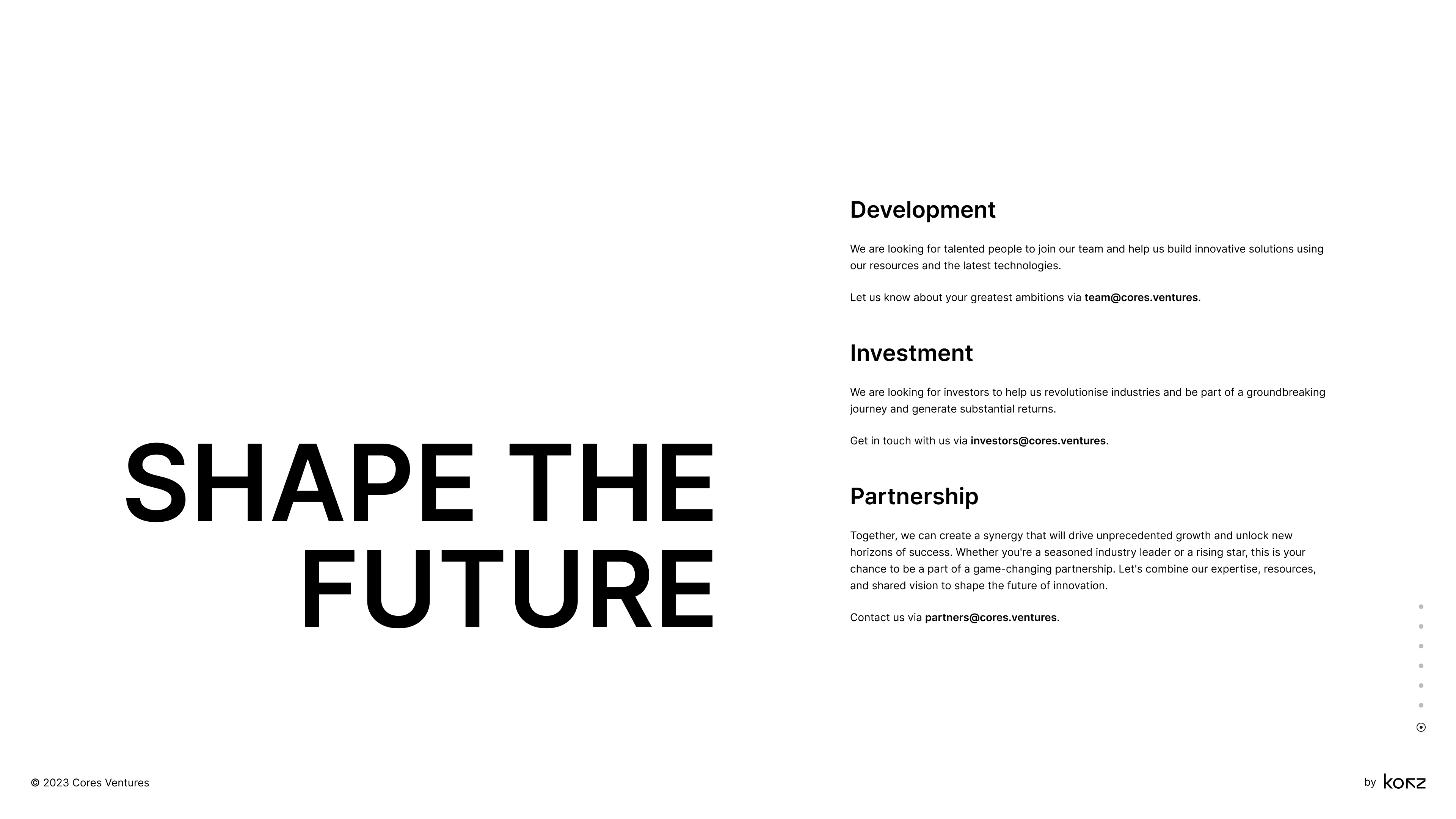 Cores Ventures wanted us to redesign their website with a established and impactful format to share their unique business model as they described: "We want to motivate people to do good. To be the best they can be, to achieve the most they can achieve."